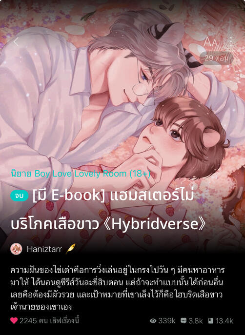 นามปากกา Haniztarr | นักเขียนนิยายวาย ปัจจุบันมีผลงานทั้งหมด 6 เรื่อง ผลงานปัจจุบัน : นักรบถ้วยฟู 🐼🌿